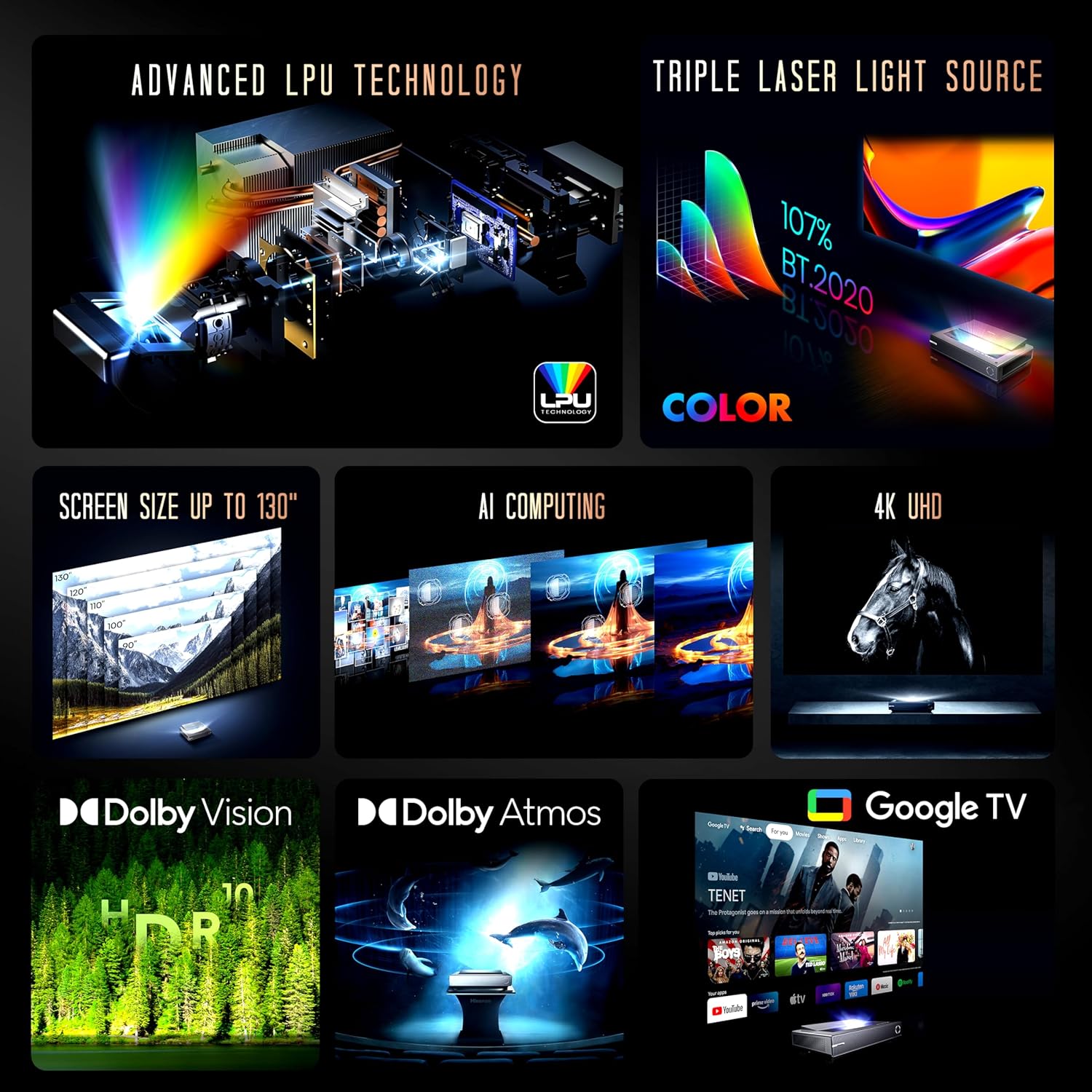 Incredible Clarity and Contrast: 4K Ultra HD brings over 8 million pixels to create incredible clarity across an extra-large projection. With support for HDRI0, HLG, and Dolby Vision, Laser cinema can leverage High Dynamic Range to further expand the heights and depths.